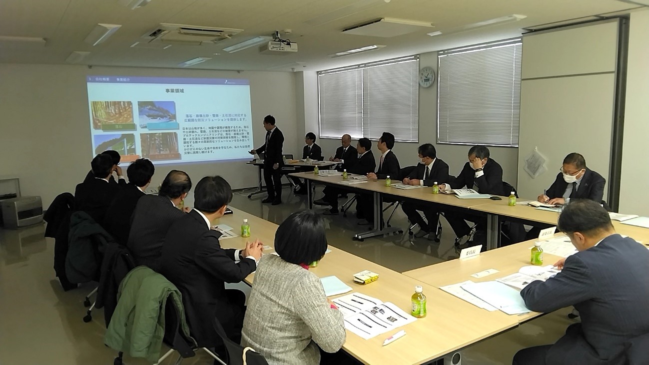 2025年1月20日、プロテックエンジニアリングは、新潟県議会からの依頼により「防災・脱炭素社会づくり特別委員会」による行政視察を受け入れ、落石防護柵等自然災害対策製品の開発についての説明や製造工場および国内最大級の防災施設実験場の案内を行いました。