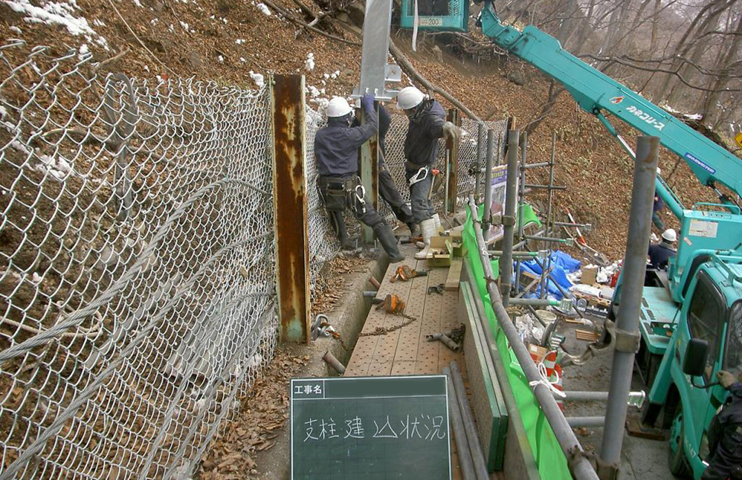 既設落石防護柵の撤去・再設置を