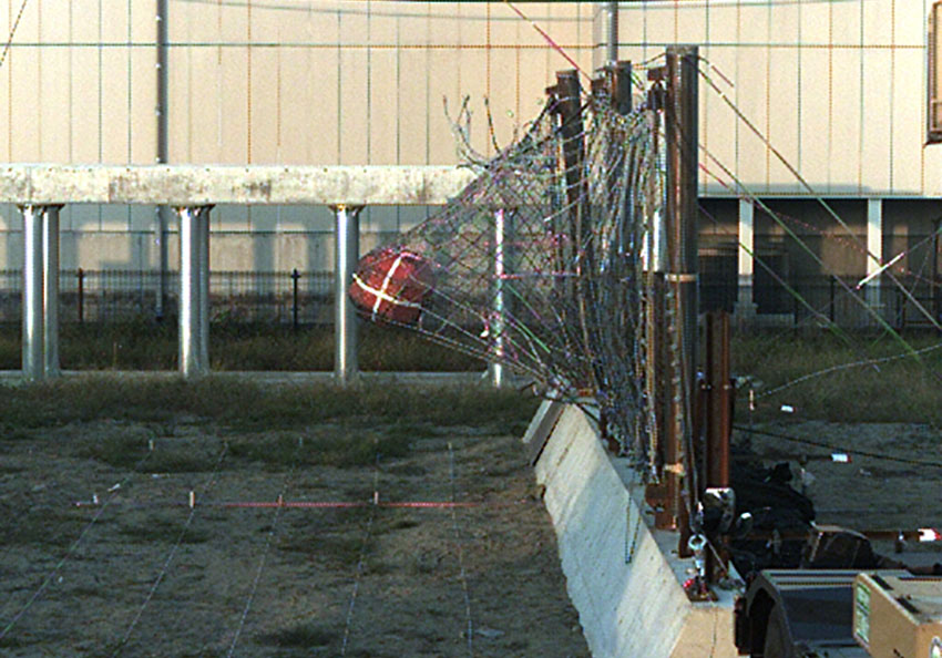 落石を防護する支持面であるワイヤネット単独のエネルギー吸収性能を確認し、実構造の基礎資料としました。