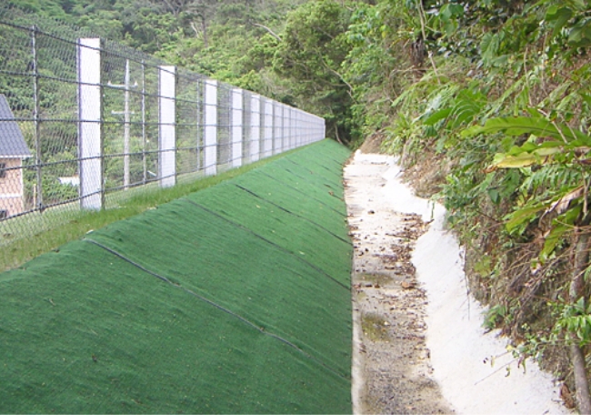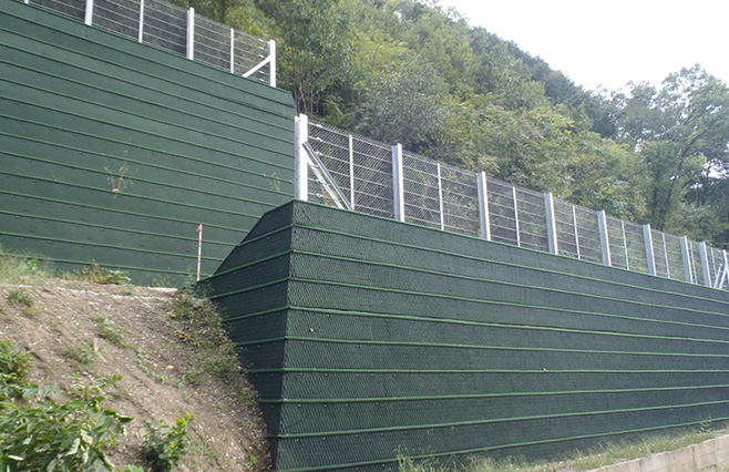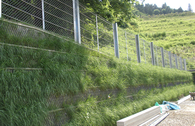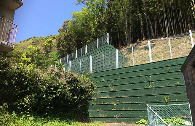 特殊繊維で補強した土の擁壁。