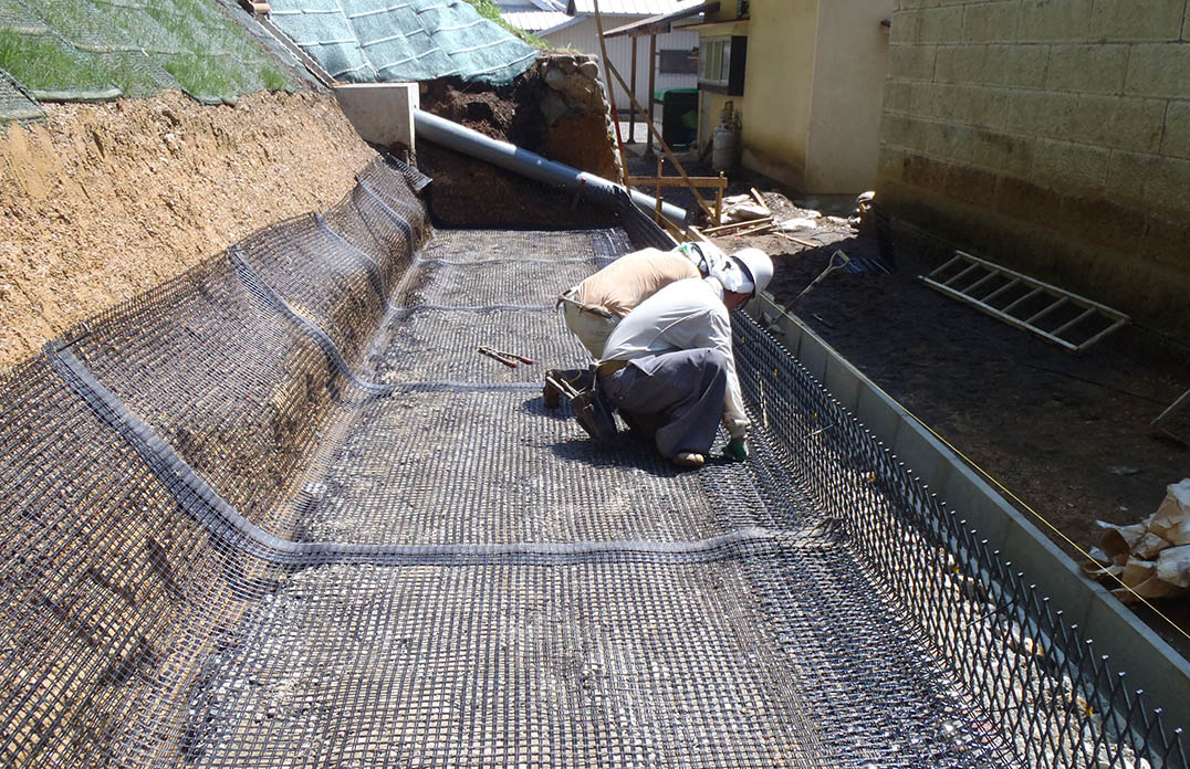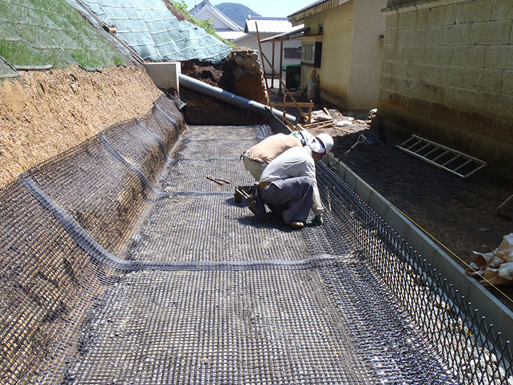 ジオグリッド・壁面材設置
