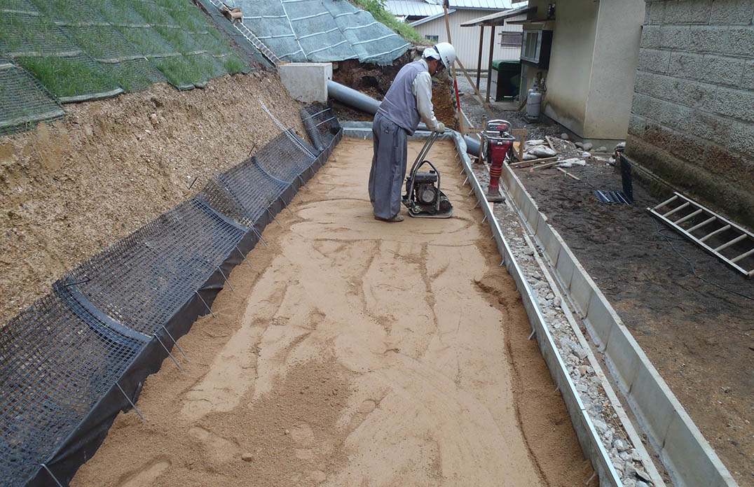 撒き出し、転圧
