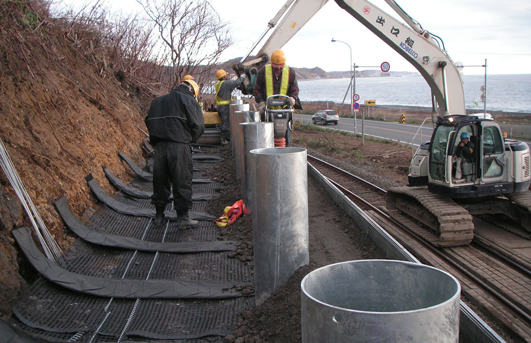 衝撃ジオグリッド(ロックデム)