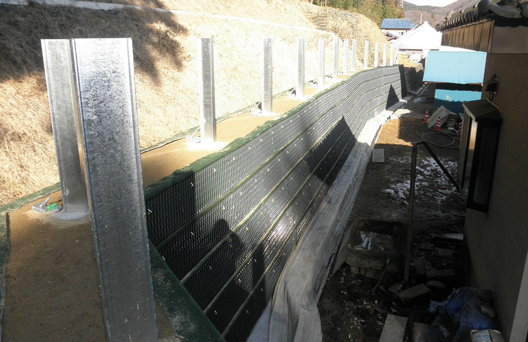 - 補強土壁で効率良く土砂衝撃力を吸収