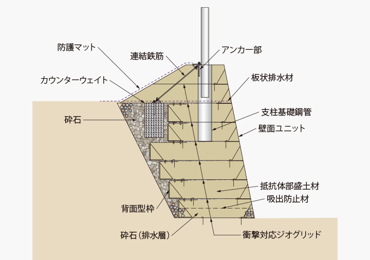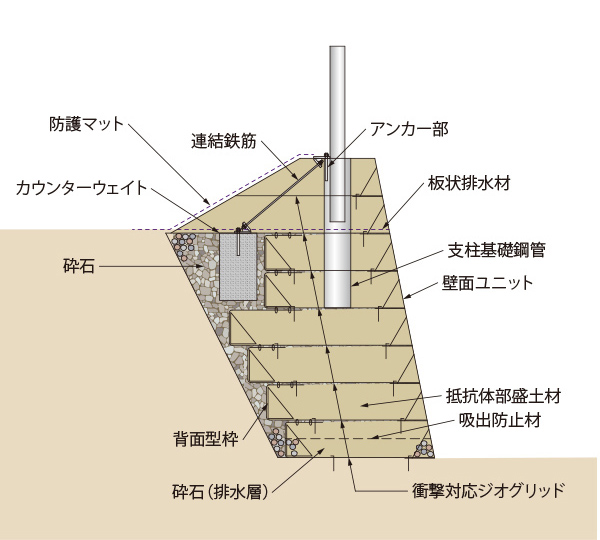 - 衝撃吸収性に優れた補強土壁