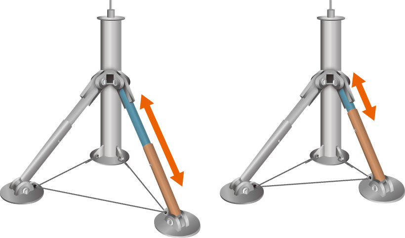 主柱を支える2本の支柱は伸縮可能であり、凹凸のある斜面でも現地で支柱の長さを調整することで、容易に設置をすることができます。