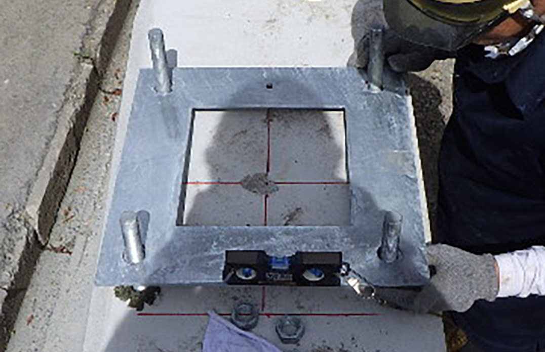 支柱設置位置にアンカーボルトと ベースプレートを設置します。 -