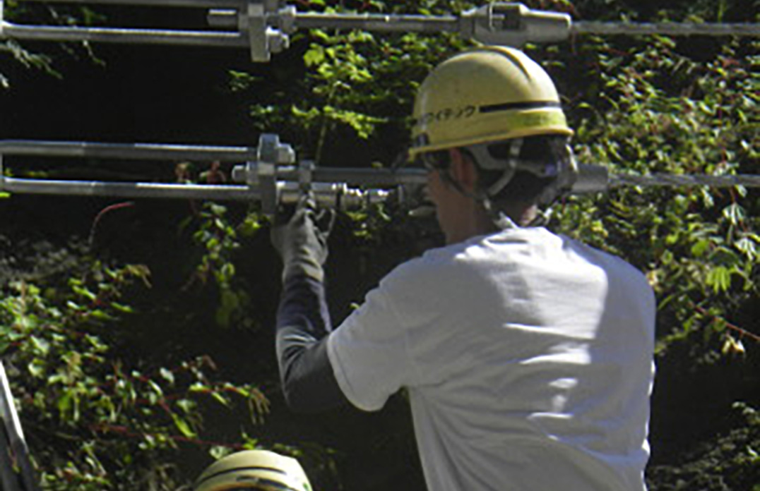 再強フェンス Lタイプは、既設落石防護柵における柵高不足の改善や老朽化対策に対応する補強工法です。既設防護柵の擁壁を再利用するため、短工期・低コストでの対策が可能です。